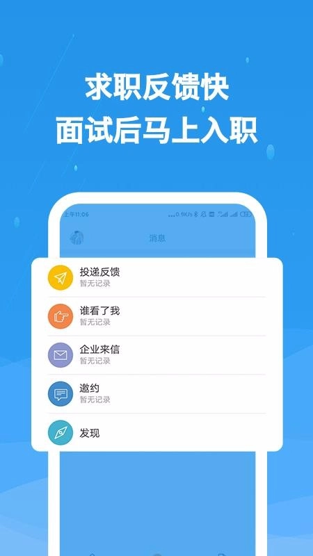 5、【企业来信】企业人事经理发送的面试、入职等消息会第一时间推送给您。