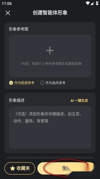 2、选择形象参考图和形象描述,然后点击“生成”;