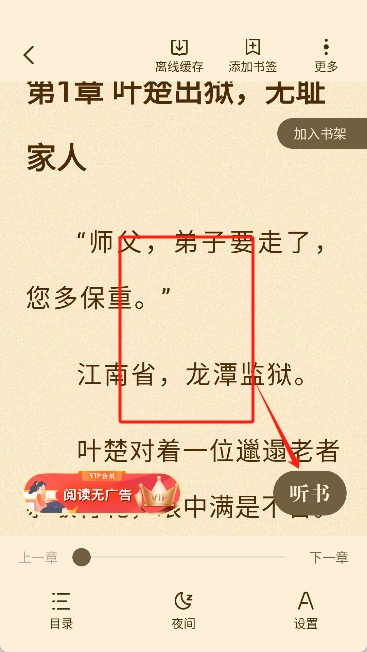 4. 点击屏幕中间,在弹出的功能框中点击“听书”。