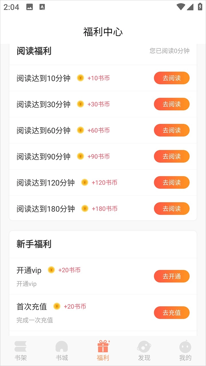 2、每日签到可以获得每日的书币,连续签到还可以开启礼包