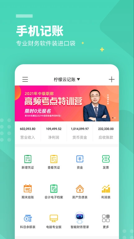 柠檬云记账数据与柠檬云财务软件电脑版自动同步,随时随地用录入凭证,一键分享报表给老板。