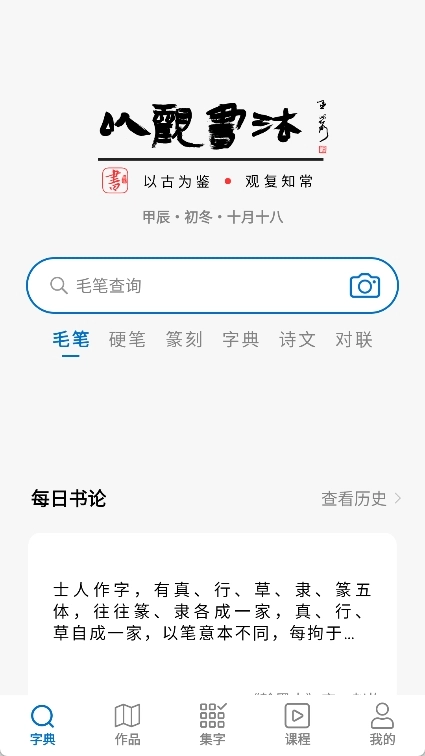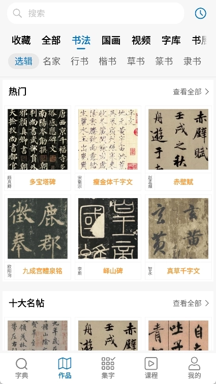 以观书法是一款专业性很强的书法字帖学习软件,在这里我们能欣赏到历代书法大师的真迹图片,要是想专注练习某一个字,还能单独提取并放大。软件里收录了行书、楷书、隶书等多种字体,不管我们想练习哪种字体的字,都能找到对应的作品来学习。另外,我们可以查询单个或多个字的写法,也能直接练习硬笔字,写完之后还能分享给他人呢!
