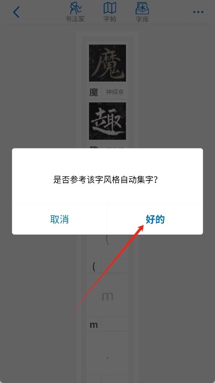 7、并且应用提供了自动集字功能,也可以自己手动逐字挑选。