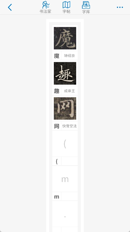 3. 拥有超过100万张书法字形图片,并包含字帖真迹的单字图片。