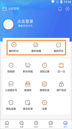 2、然后在我的一栏可以看到自己的积分、收藏和在社区的评论等内容;