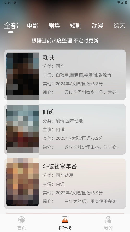 3、排行榜页面根据当前热度将影视进行了排序