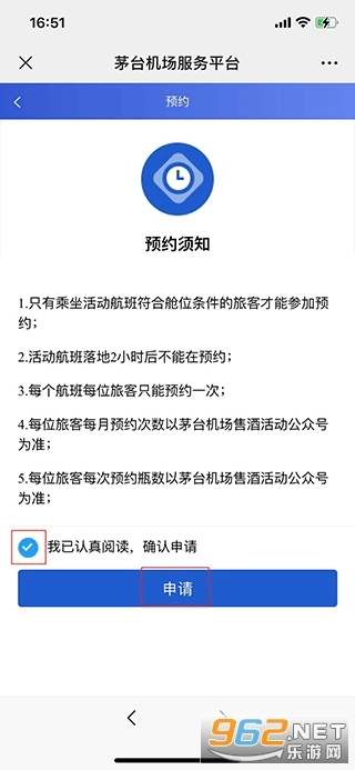 首页航班售酒预约模块,进入航班售酒预约,请认真查看预约须知,勾选后申请预约;