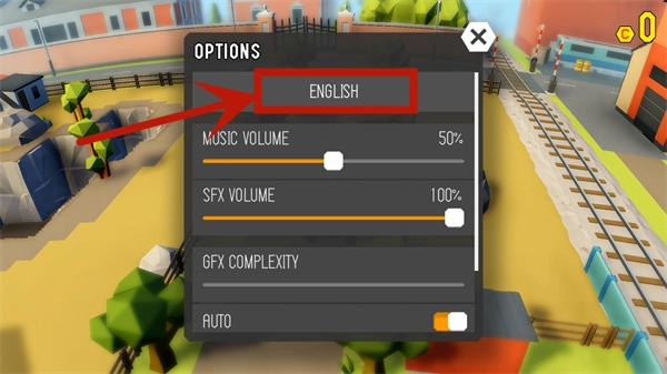 1、启动《鲁莽大逃亡2》,进入游戏主界面后,能看到界面默认显示为英文,此时点击右下角的【齿轮】形状设置图标。