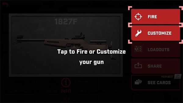 7、选择右边的【Shoot】图标可以实验你拥有的枪械;