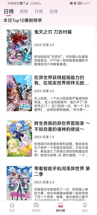 根据动漫的受欢迎程度进行一个榜单的排行,从而轻松知道什么样的动漫是不错的!