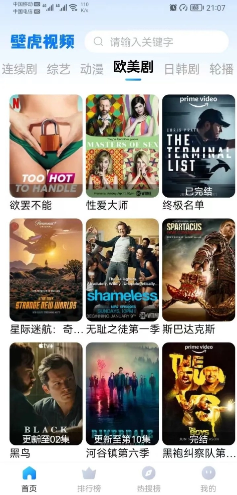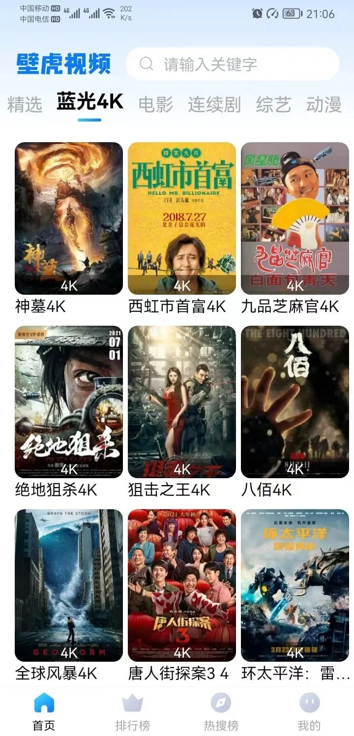 打开壁虎视频后,你可以在这里观看电影、美剧、综艺以及日漫等内容。