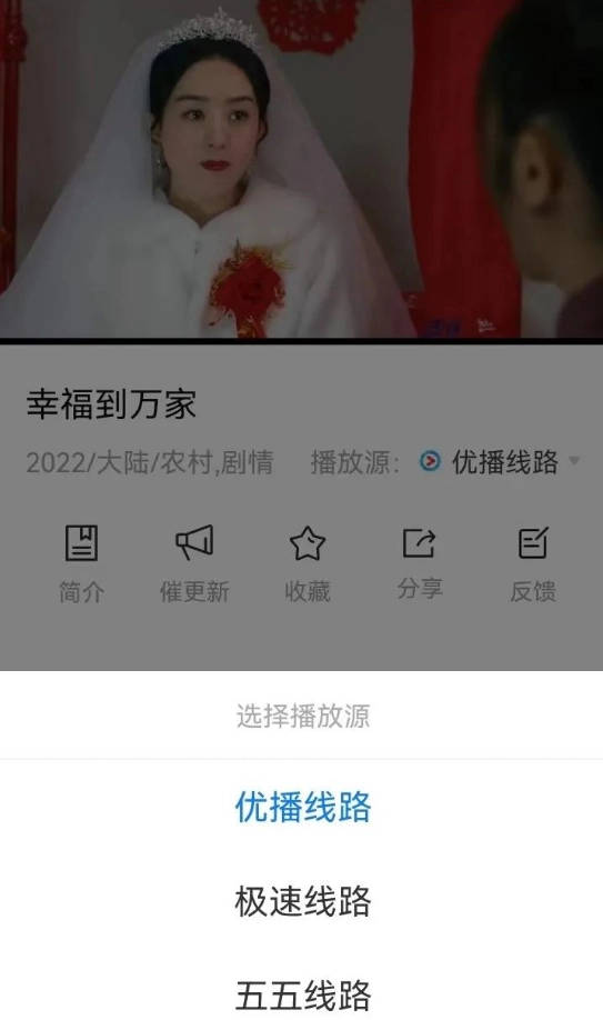 4.播放界面可以进行播放源切换。也可催更新或者分享、收藏等。