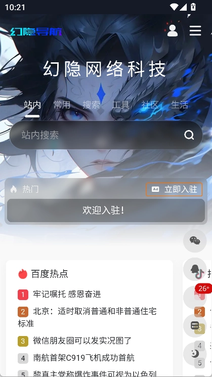 1、首先前往魔趣网下载并安装幻隐导航,随后打开该软件进入首页。