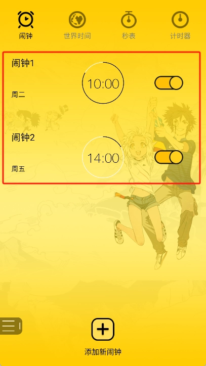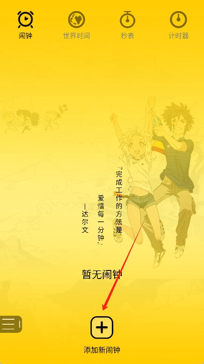 1、开启操作:首先在本站找到二次元闹钟并安装到手机,打开应用后点击“添加新闹钟”。