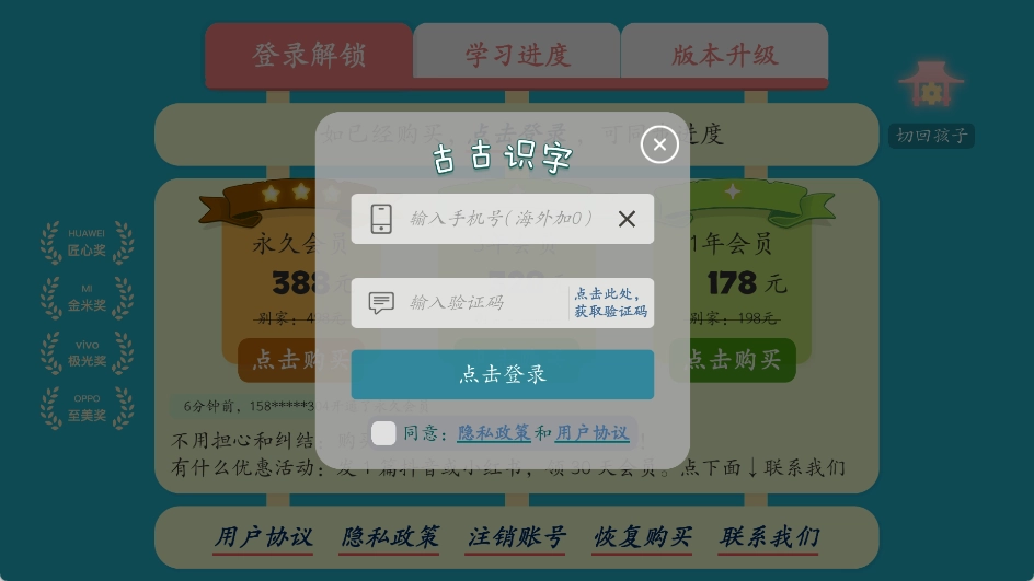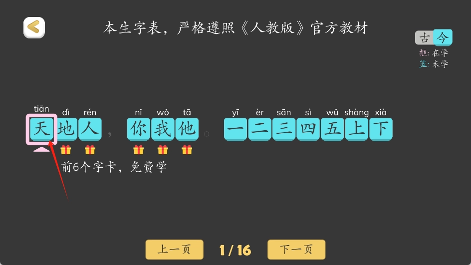 3、选择学习内容:在内可以浏览并选择适合孩子年龄段的汉字学习内容,如基础汉字、古诗词等。