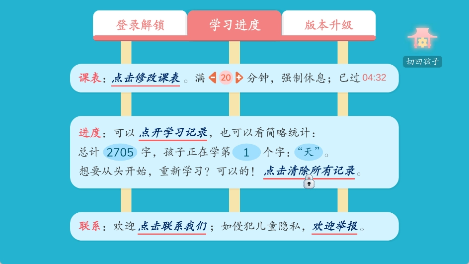 同时会记录孩子的学习进度和成绩,家长可以随时查看并了解孩子的学习情况。