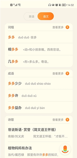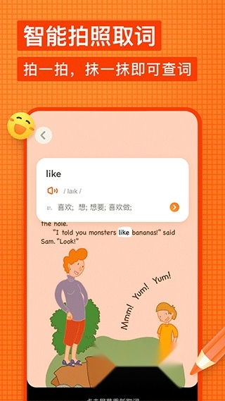 有道少儿词典是专为5-12岁儿童打造的便捷高效学习词典软件,整合了丰富的汉语与英语学习资源。它支持中文查字和英文查词功能:遇到不会写的汉字、词汇或成语时,能通过查询笔顺动图直观掌握正确书写方式;每个英文单词都配备真人发音和图片释义,孩子在线跟读时,系统还会提供智能打分反馈。