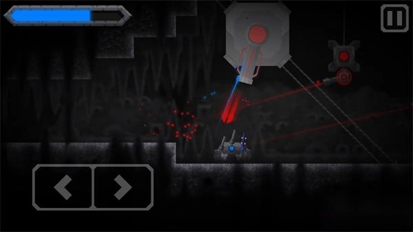 2、进入关卡后,左侧的按钮用于控制机器的前进与后退,点击右侧区域则能让机器完成跳跃动作。