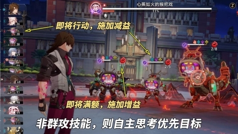建议②:合理规划击破敌人的策略。利用发条的群体拉条、圆幕的随机单体回能、贩售机恢复2个战技点以及火龙的群体增攻等机制。需时刻留意旁侧的行动条,关注下一个即将行动的敌方是否处于击破状态,尤其要注意发条会拉动敌方群体的行动条,因此应优先对其进行击破以打断节奏。