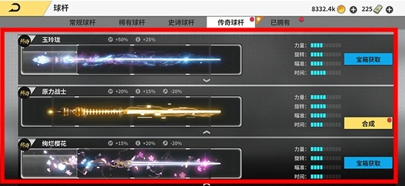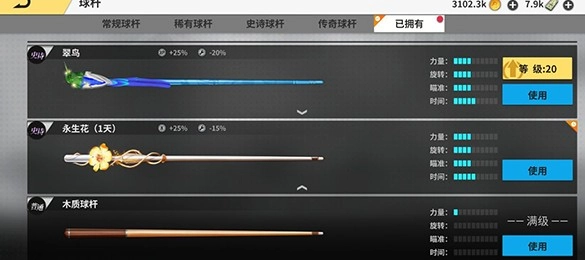 2、B级球杆为初始球杆,无法进行升级或强化。