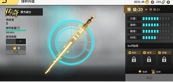 4、球杆的能量值会在每次击球后减少1点,一旦能量降到0就必须进行维修,不然球杆的属性就会下降到初始属性的一半。
