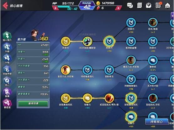 核心系统应该是最复杂也相对“硬核”的部分,大致可分为提升素质、等级升级和技能解锁这几类。前期要是只是想组个容易上手的队伍,或者还没确定角色是否作为主力培养,建议先解锁必杀技(第二排第一个)和核心技能(第三排第三个),至于打手技能(第一排第二个)可以随意选择,后续是否继续投入资源则看个人偏好。这算是比较基础的解锁思路,毕竟收集核心道具的话,刷核心副本会更快,但这需要消耗体力。