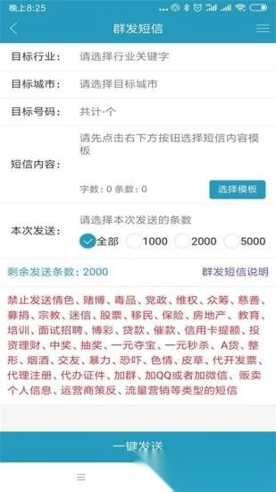 支持快速批量发送短信,即时发布信息并查看发送进度;