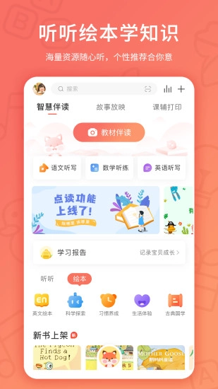 绘本畅听:拥有海量绘本内容资源,包含儿歌、故事、国学、科学等各类题材。