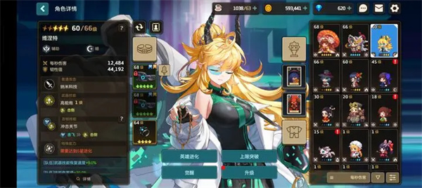 用来培养角色以及队伍组成,培养角色分为升级,觉醒,进化,上限突破。