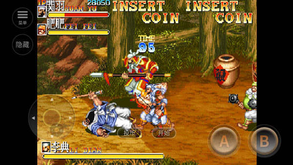 把曹仁扔进左边,好好封着他,再用飞腿慢慢收拾后面的小忍。有时封了半天也不见曹仁的踪影,那就要离开画面边一会,引他出来,再把他打回去。过关分数95万左右(我最高曾100万)。