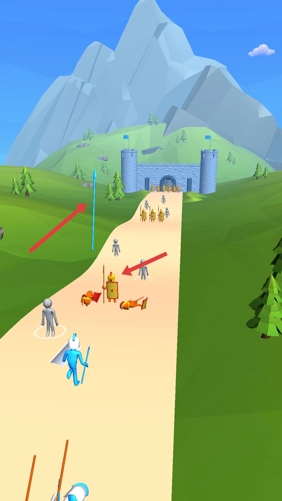 3、接近城堡阶段,利用长矛兵远程攻击,灵活调整队伍站位,避开敌方集火,稳步清理路径敌人,为攻城做准备。