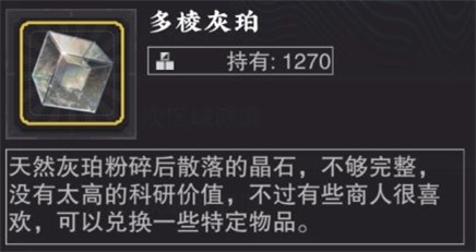 多棱灰珀:150个=一次单抽,用途比较广泛,可以在易物所购买道具,或者在账号没有活力无法挑战副本,推主线的时候购买活力。获取方式也非常多,解锁CG图鉴,首次通关主线,副本,资源地图等等。