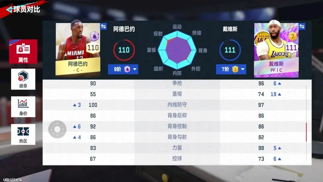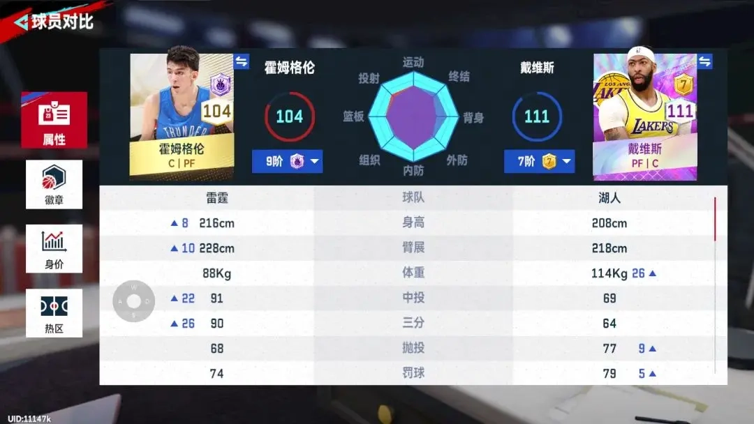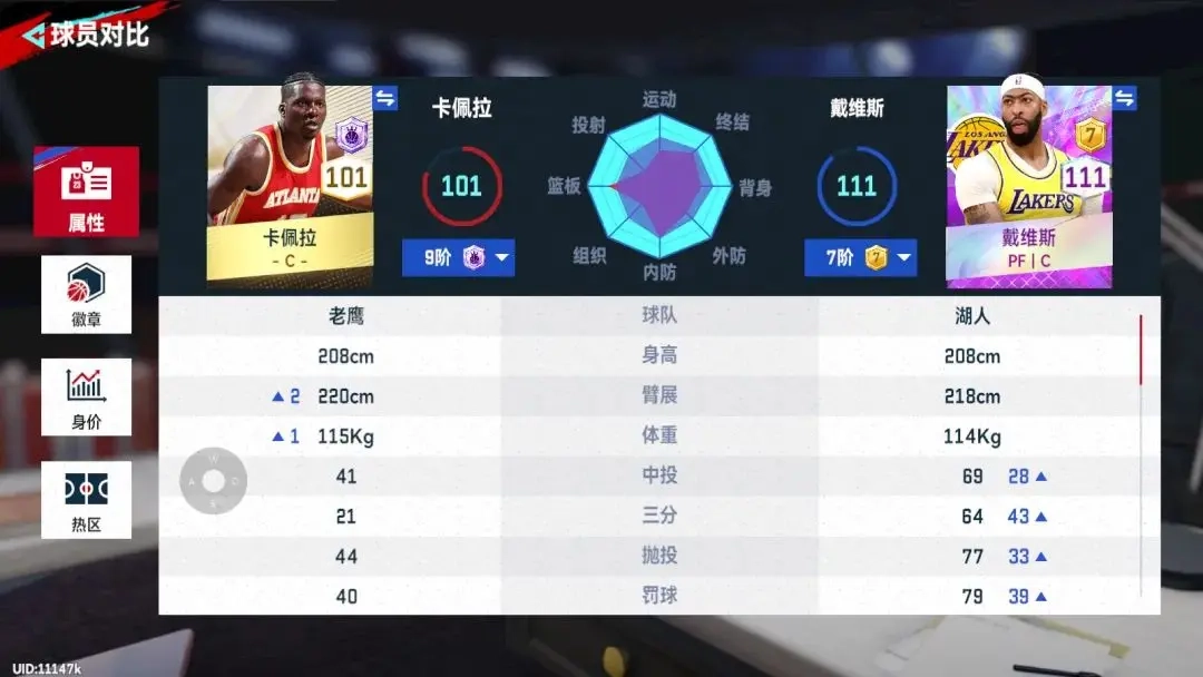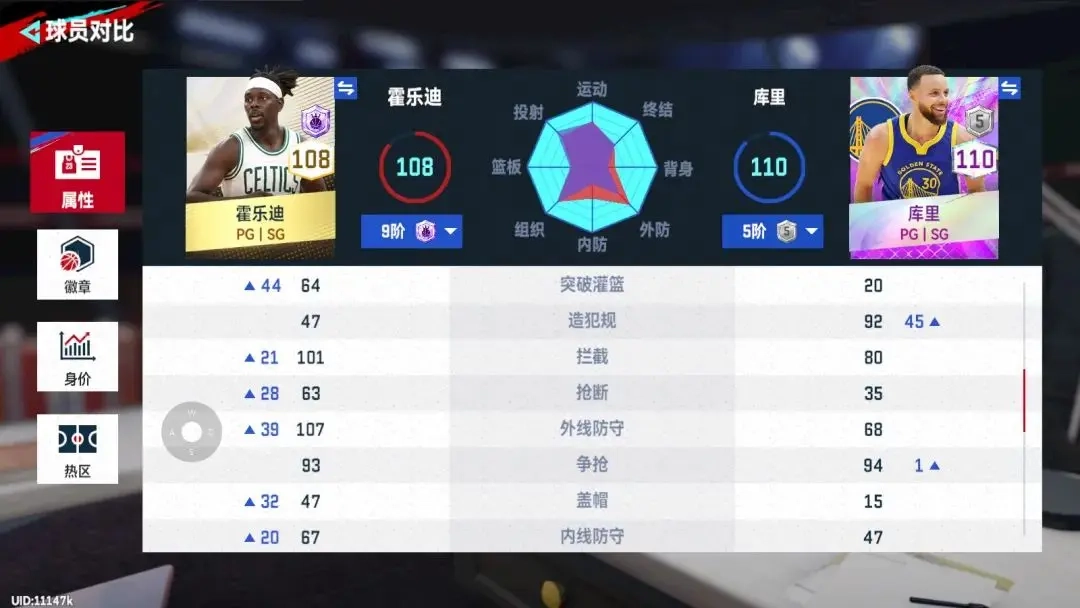 我们先来看下两个球员的面板数值对比: