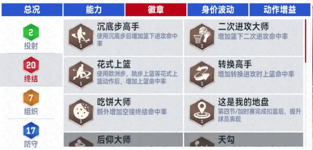 球员属性:徽章