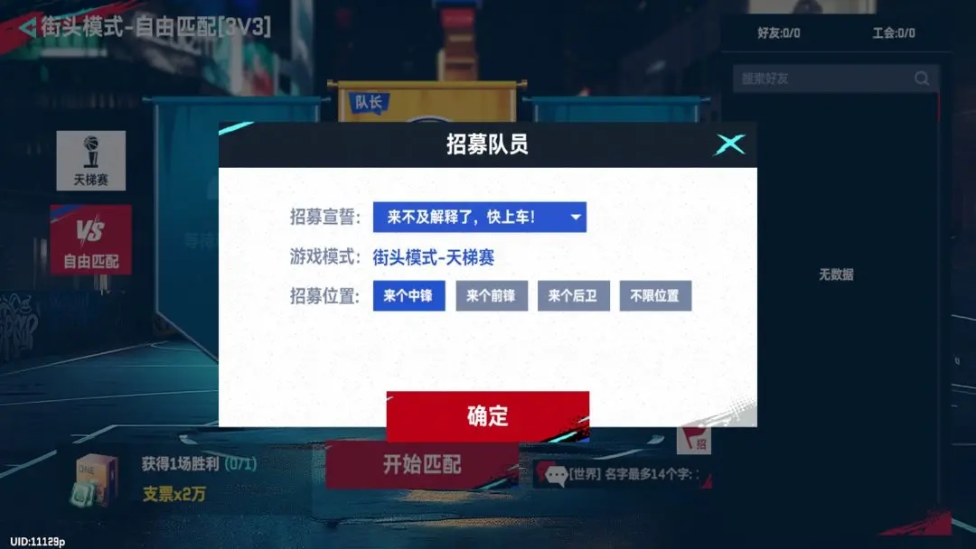 为了帮助各位巅峰Boss更好匹配到更合拍的对手,在街头-天梯赛中,匹配前可选择位置倾向:外线优先、内线优先、全能手等,选择你喜欢或擅长的位置后,可正式进入匹配。