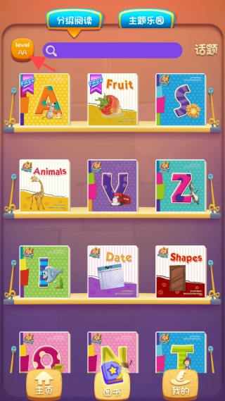 3、打开【图书】界面,选择级别,挑选心仪的绘本。