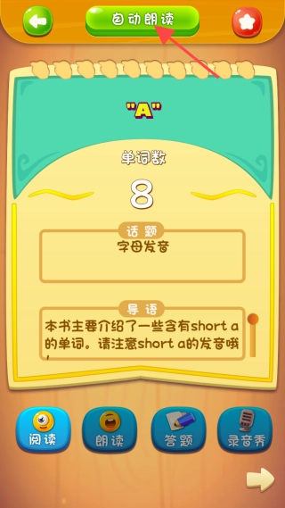 4、点击书籍,进入阅读界面,点击【自动朗读】按钮即可。