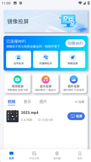3、在历史记录中可以了解关于视频、音乐以及图片的各类投屏信息;