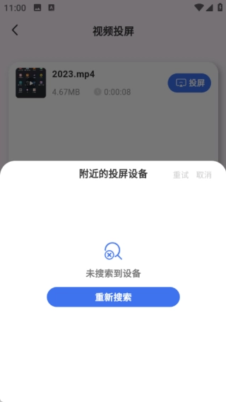 2、要实现投屏,可点击视频投屏选项,在此处点击投屏按钮后,连接附近的投屏设备,就能完成投屏操作。