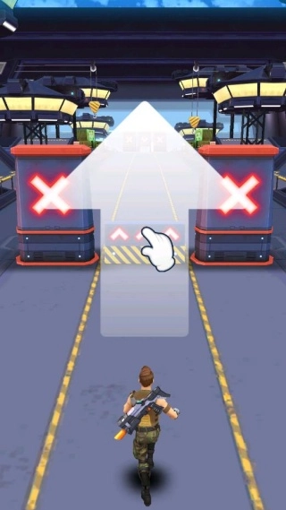 1. 游戏开始时,应优先抢占中央赛道。当碰到障碍物时,依照提示向上滑动屏幕,角色便能轻松越过障碍物。