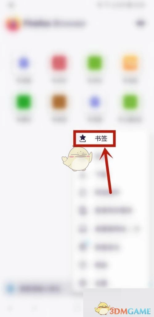 2、然后在页面中的菜单上,点击书签。