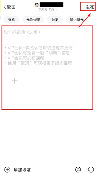 3、填写帖子内容,然后点击【发布】即可。
