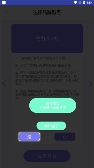 6、若点击“是”,即意味着匹配成功,随后可点击进入遥控界面。
