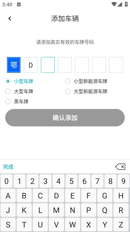 1. 于本站下载并安装软件,打开后,在软件首页点击“添加车辆”,填写车辆相关信息,完成车辆绑定。