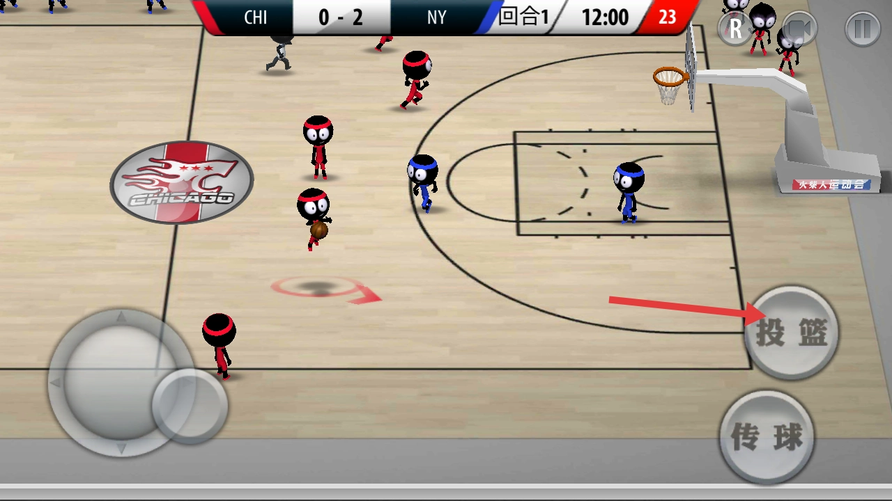 1. 进入游戏之后,首先进入投篮基础教程,依照指引通过调整虚拟摇杆来控制球员站位,学习长按投篮键进行蓄力这一基础操作,把握近距离定点投篮的发力节奏。