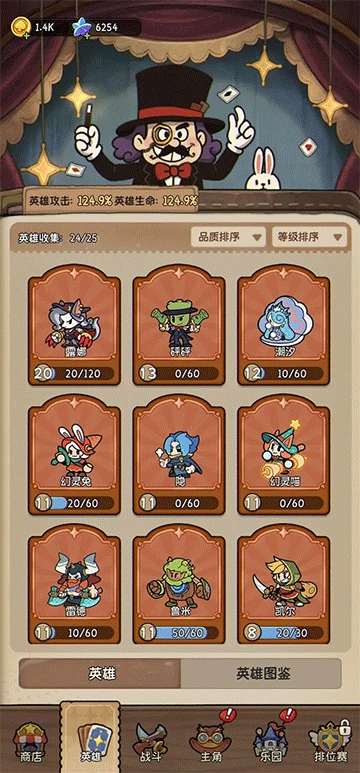 稳定用到 20 关 +,战力取决于英雄等级、收藏品和宝石。