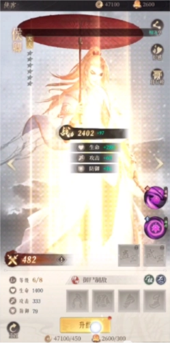 4、侠客升级,在游戏中,侠客也是可以升级的,玩家们都是能够在游戏中使用阅历,来提升角色的等级,侠客升级以后,是能够提升不少的战力的。