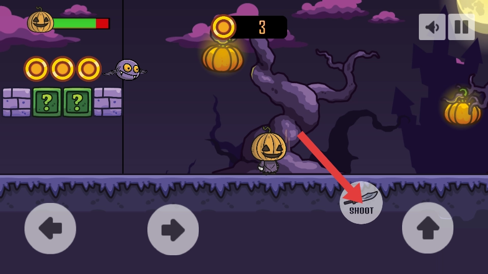 1、2D街机式虚拟按键操控:运用街机风格的操作方式,借助虚拟按键来掌控南瓜头小人的移动、跳跃以及攻击动作。其操作逻辑简洁明了,新手可以迅速上手,毫不费力地掌握闯关诀窍。