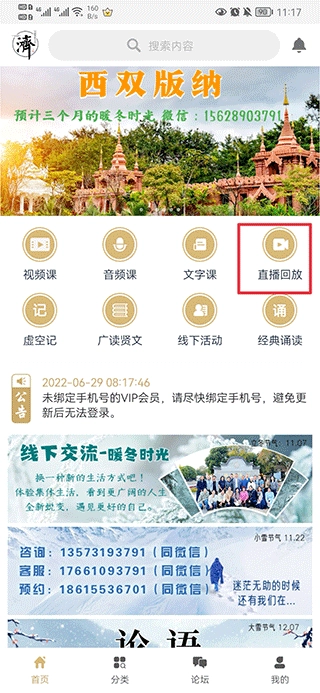 1、打开虚空济,在首页中点击直播回放