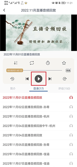 3、然后在目录中选择具体日期直播,并点击播放即可